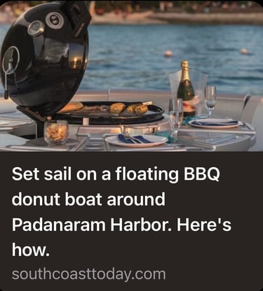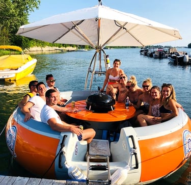 Experience the ultimate waterfront dining with GRUB TUB. Rent a BBQ donut boat and enjoy great food, great company, and stunning harbor views!